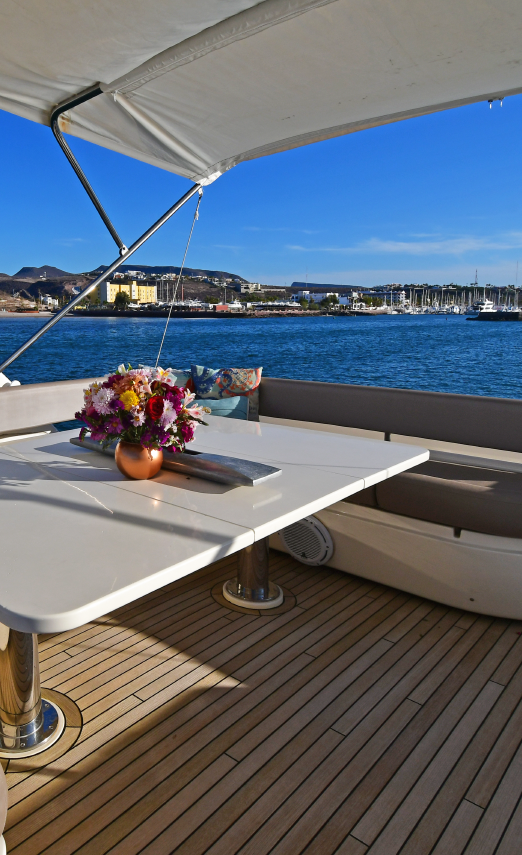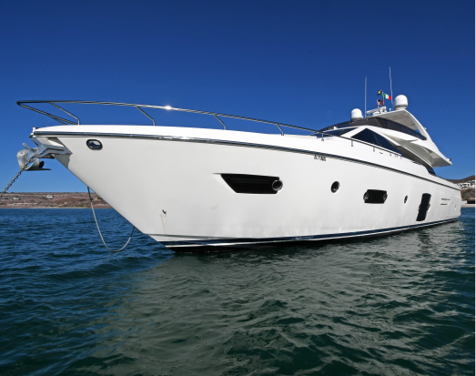 En Vámonos ponemos a tu disposición nuestro Ferretti de 72” 2013. Cuenta con 4 Camarotes y espacio para 8 pasajeros+ camastros en la proa + antecomedor en la popa + terraza en el flybridge con Grillzone. Lancha de seguridad para múltiples actividades + área de lavado + Sala y comedor climatizado + 4 baños.